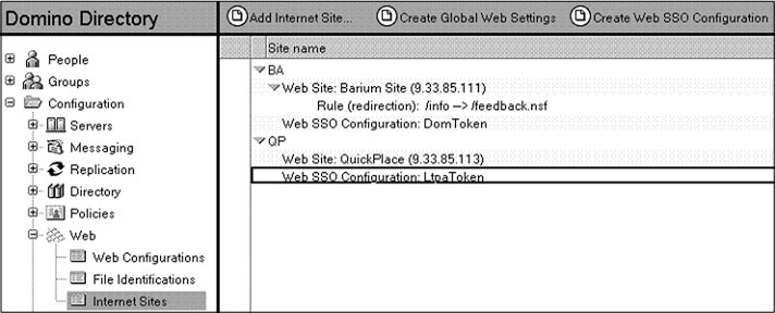 Начиная с версии 6 мы можем конфигурировать несколько интернет-сайтов. Различные конфигурации сайтов отличаются друг от друга названиями организаций. В нашем примере мы назвали организацию QP. На рис. 6.2 показан внешний вид документа Web SSO Configuration.