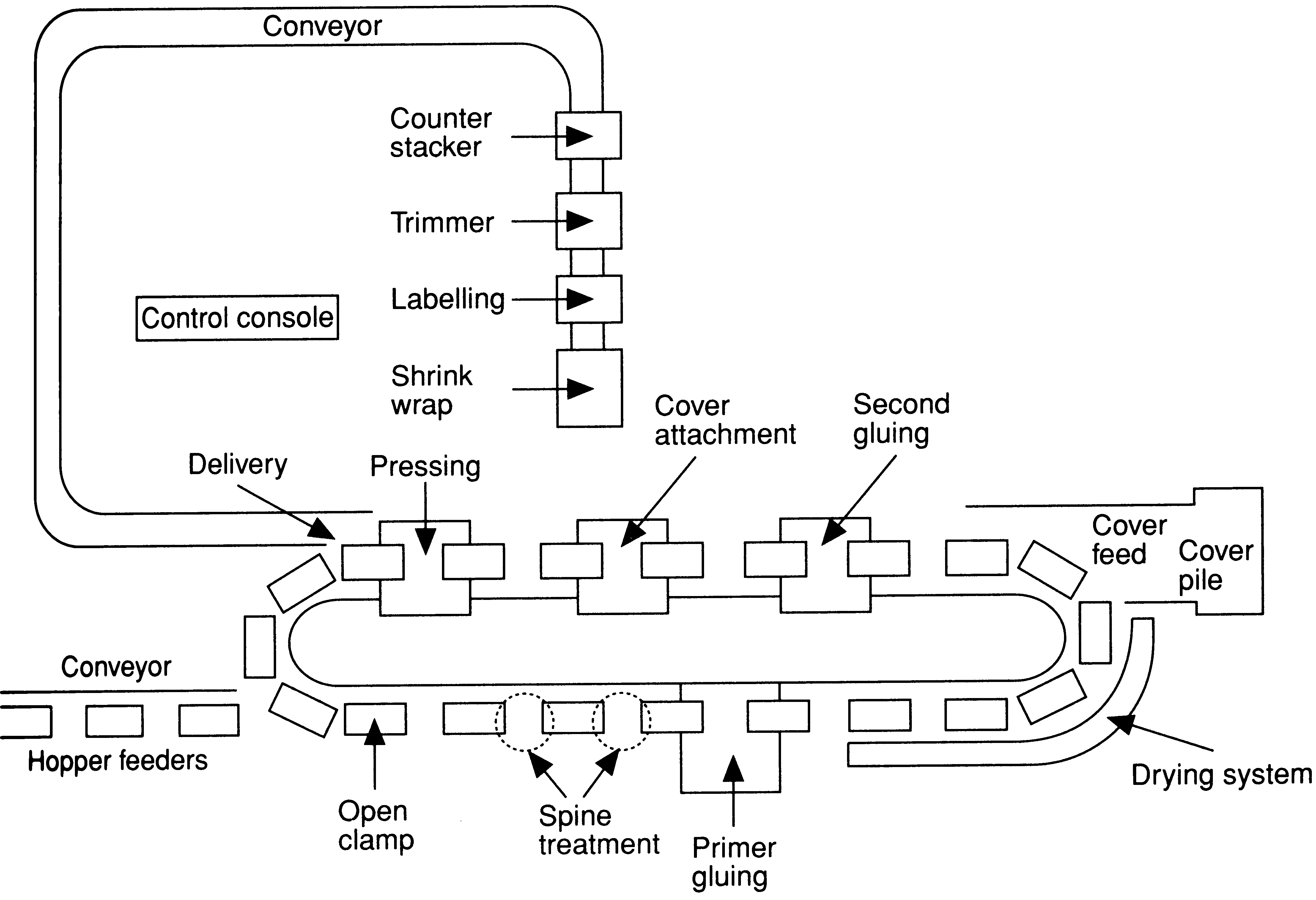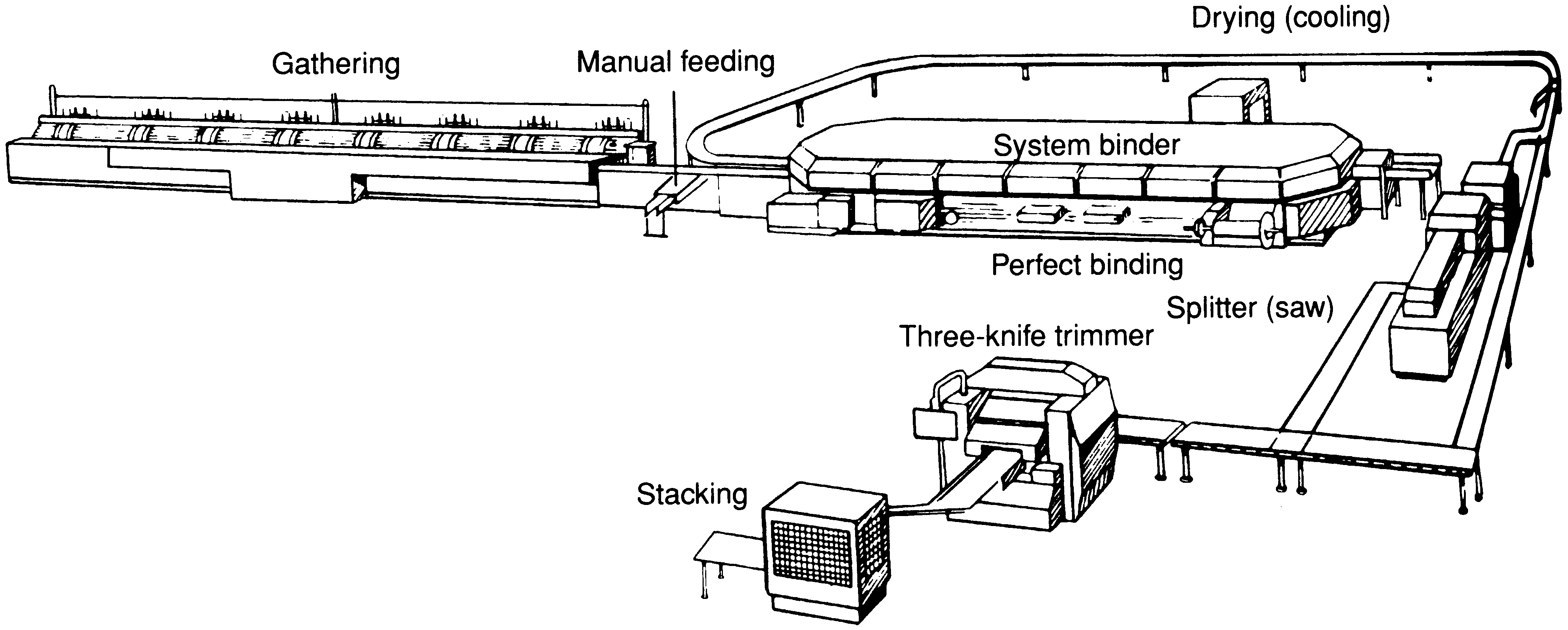 Рис. 13.3. Поточная линия по изготовлению изданий в обложке, скрепленных клеевым бесшвейным способом