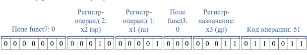 Рассмотрим декодирование инструкции R-типа на примере инструкции "add gp, ra, sp".