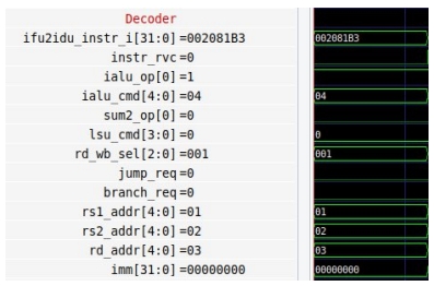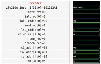 - Вычисление адреса записи происходит без использования АЛУ, по данной причине ialu_cmd = 0.