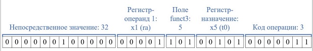 - Непосредственное значение - 32 (imm = 32).