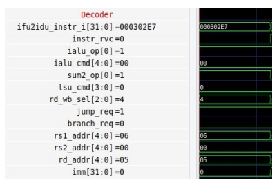 - Вычисление адреса прыжка происходит без использования АЛУ, по данной причине ialu_cmd = 0.