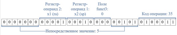 - Непосредственное значение - 5 (imm = 5).