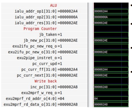 - Операнды "i_alu_addr_op1" и "i_alu_addr_op2" направляются в сумматор для вычисления адреса прыжка (i_alu_addr_res = 0x2AE).
