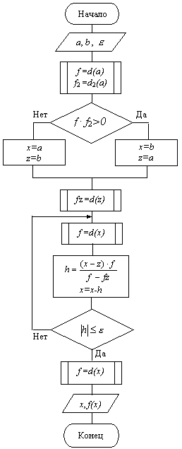 Схема алгоритма уточнения корня метод Ньютона приведена на рис. 4.9