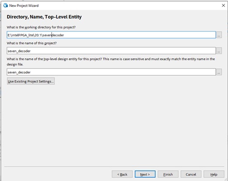 На первой странице окна NPW имеется кнопка Use Existing Project Settings. С помощью этой кнопки пользователь может задать установки, которые будут использоваться по умолчанию в его новом проекте. Причем можно использовать установки либо из последнего открытого в Quartus проекта, либо из указанного пользователем проекта.
