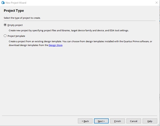 В открывшемся окне (рисунок 2.31), выбрать тип проекта Empty project - пустой проект. Метка Project template позволяет загрузить существующие примеры для различных семейств программируемой логики.