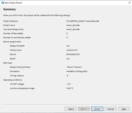 Для получения навыков проектирования устройств в среде Quartus PrimeLite выполним разработку и симуляцию проекта для дешифратора семисегментого индикатора с общим анодом.