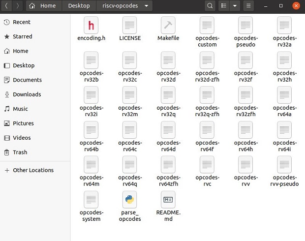 В корневой папке инструмента RISC-V Opcodes находятся различные файлы, каждый из которых относится к определенному набору RISC-V.