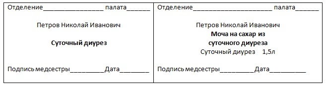 По окончании сбора мочи медицинская сестра должна доставить всю собранную за сутки мочу в клиническую лабораторию и рассчитать водный баланс пациента.