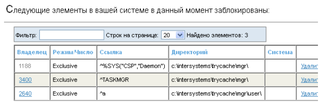 Программой ^LOCKTAB, запускаемой из терминала. Пример: