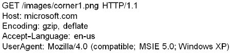 В приведенном HTTP-запросе клиент обращается к серверу "microsoft.com", запрашивает ресурс "images/corner.png" и указывает, что он способен принимать сжатое содержимое по алгоритму "gzip" или "deflate", его языком является английский язык и указывает версию своего браузера. Как было отмечено ранее, количество и набор заголовков может существенно отличаться. Можно привести другой пример HTTP-запроса.
