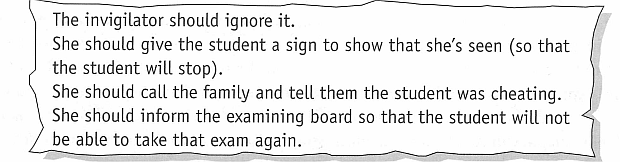 - Reaching a consensus: one of the best ways of encouraging discussion is to provide activities which force students to reach a decision or a consensus, often as a result of choosing between specific alternatives. An example of this kind of activity (with particular relevance to schools) is where students consider a scenario in which an invigilator during a public exam catches a student copying from hidden notes. The class has to decide between a range of options, such as: