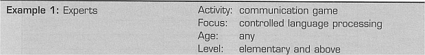 There are many communication games, all of which aim to get students talking as quickly and fluently as possible. Two particular categories are worth mentioning here: