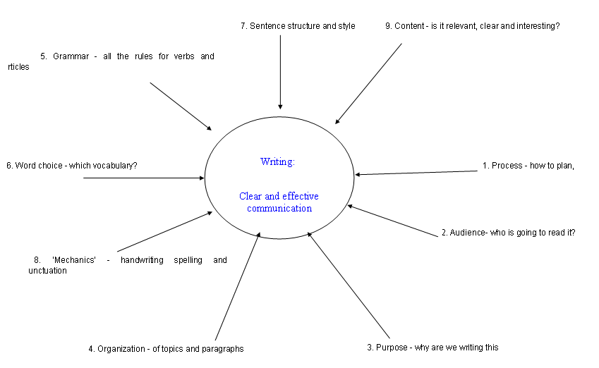 As you can see, writing well is a very complicated process and you cannot teach all the skills at once, but need to concentrate on different aspects of writing in different lessons. And remember, every piece of writing needs to have a clear form. Students should be writing ‘a letter’, ‘a leaflet’, ‘a description’, not a collection of sentences.