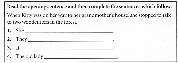 Alternatively, they can be asked to re-write the following paragraphs, replacing Kitty Redcape, the prince and the bear by she, her, he, him or it where necessary.