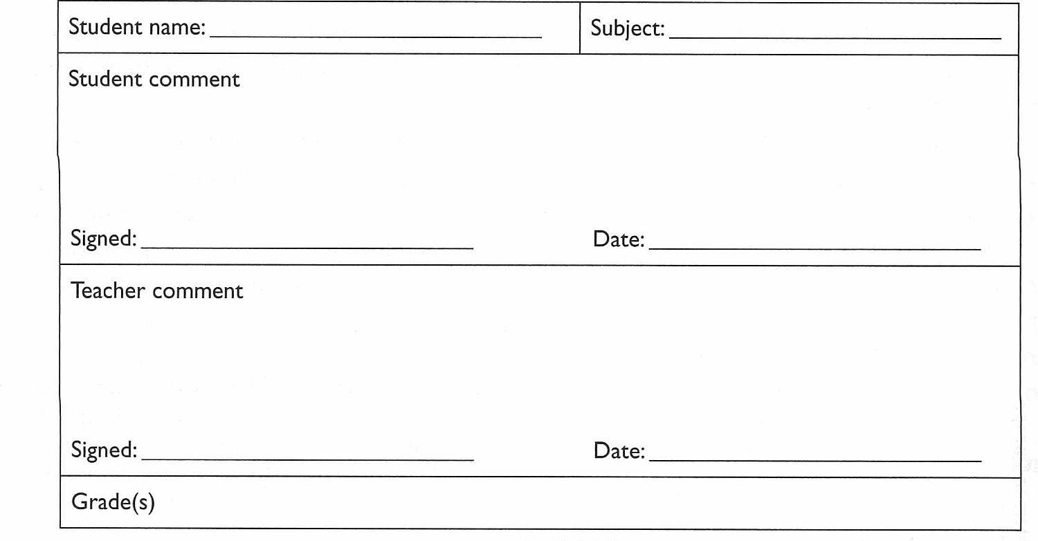 A final way of formalising an assessment dialogue between teacher and student is through a record of achievement (ROA). Here, students are asked to write their own assessment of their successes and difficulties and say how they think they can proceed. The teacher then adds their own assessment of the students' progress (including grades), and replies to the points the student has made. A typical ROA form can be seen in Figure 9.2.