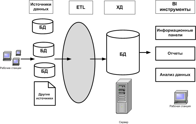 Ниже, на рис. 4.6, показано, как система бизнес-аналитики взаимодействует с ХД.