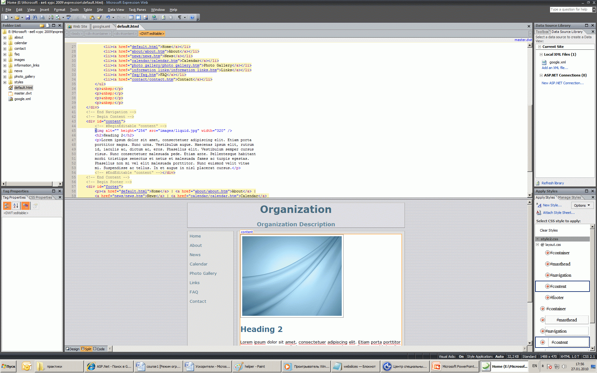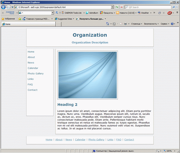 В качестве инструмента создания веб - фрагмента воспользуемся Expression Studio web 2.0