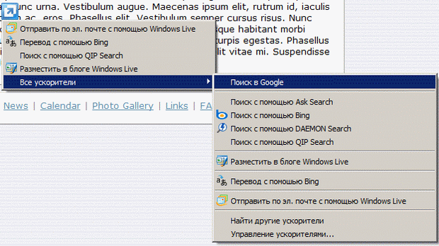 Создание ускорителей в IE8, в том числе с функцией предпросмотра