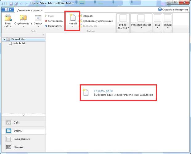 2.Перейдем в рабочее пространство "Файлы" и создадим новый файл: