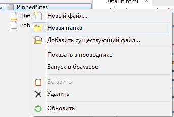 В данной части практического задания, будут рассмотрены базовые принципы по созданию сайтов с использования функций Pinned Site.