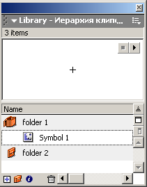 Символы и экземпляры - это очень важная концепция, поэтому мы будем говорить о ней минимум трижды с разным уровнем детализации. Пока ограничимся следующей информацией: говоря о клипе, можно говорить о его символе (аналог класса) и об экземпляре (аналог объекта класса). То есть каждому уникальному клипу соответствует свой символ ; но можно сделать множество экземпляров клипа, порожденных одним и тем же символом. Список всех символов клипа можно посмотреть в панели " Library ", которая выдвигается на поверхность по нажатию Ctrl+L.