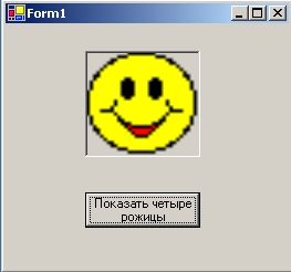 Щелкните несколько раз на кнопке Показать четыре рожицы. Обратите внимание, как выражение рожицы изменяется от мрачного до счастливого.