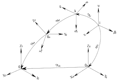 относительно осей системыкоординат (XYZ)д, xi, yi, zi — координаты опорных точек траектории в системе координат (XYZ)д,