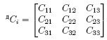 — подматрица направляющих косинусов осей подвижного трехгранника