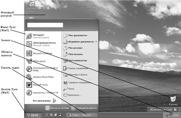Для того чтобы работать с компьютером, необходимо прежде всего начать сеанс работы. Если на компьютере был зарегистрирован только один пользователь, Windows XP автоматически начинает сеанс работы с этой учетной записи при включении компьютера. Если на компьютере зарегистрировано несколько пользователей, система Windows XP предлагает выбрать пользовательский профиль. Если ваша учетная запись защищена паролем, вы должны ввести пароль.