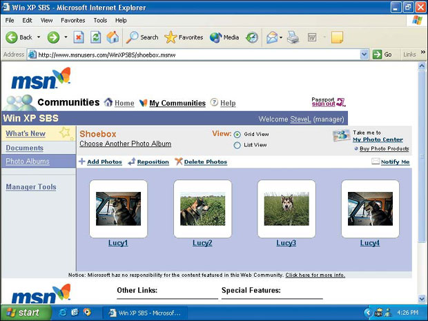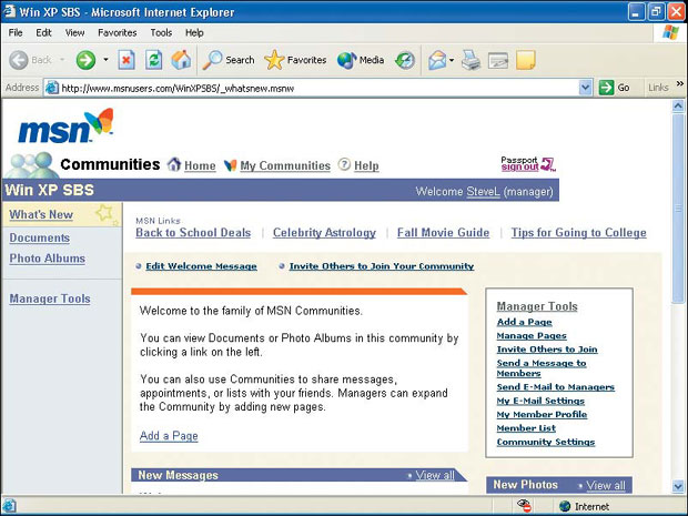 Вы будете зарегистрированы в своем новом сообществе MSN как руководитель (менеджер). Вы можете просмотреть фотографии, которые только что опубликовали или опробовать некоторые средства управления, представленные на правой стороне страницы.