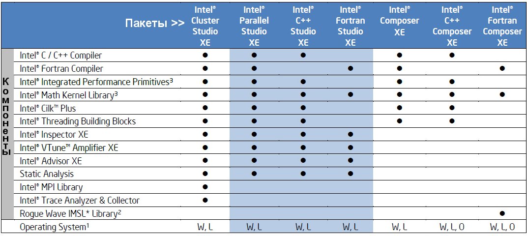 - модели параллельного программирования Intel® Threading Building Blocks (Intel® TBB) и Intel® Cilk™ Plus;