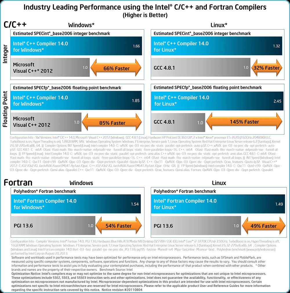 "В Intel разработали отличные компиляторы C++ и Fortran, а также математические библиотеки"