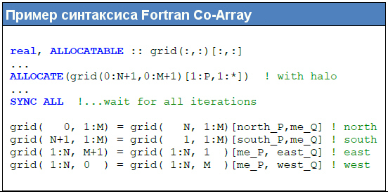 В Intel Fortran улучшена поддержка стандартов Fortran 2003 и 2008, а также обеспечена полная совместимость на уровне исходного кода с Compaq Visual Fortran. В Windows и Linux поддерживается Fortran Co-Array для одиночных многопроцессорных узлов с разделяемой памятью. В Intel Cluster Studio XE реализована поддержка кластеров. Преимущество - высокое быстродействие приложений на Fortran, работающих на индивидуальных компьютерах или на кластерах.