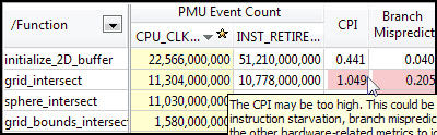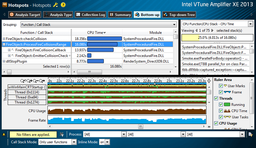 В отличие от большинства конкурирующих продуктов Intel VTune Amplifier XE выполняет не только отображение данных, но и позволяет их анализировать.