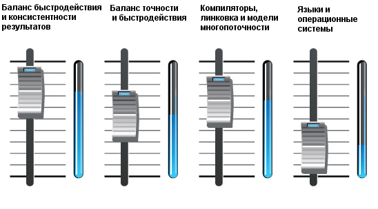 Гибкость, отвечающая требованиям разработчиков Разработчикам приходится выполнять много требований. Иногда эти требования конфликтуют между собой, и тогда нужны компромиссы. Возможно, вам нужны консистентные результаты вычислений с плавающей запятой и при этом максимально возможное быстродействие приложения? Или вам требуется более высокое быстродействие векторной математики, но не нужна максимальная точность? Intel MKL предоставляет контроль над соответствующими компромиссами. Intel MKL также совместима с выбранными вами компиляторами, языками, операционными системами, линковщиками и моделями многопоточности. Единое библиотечное решение для многих сред отменяет необходимость в освоении и применении многих библиотек. |