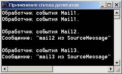 Console.Title = "Применение списка делегатов";